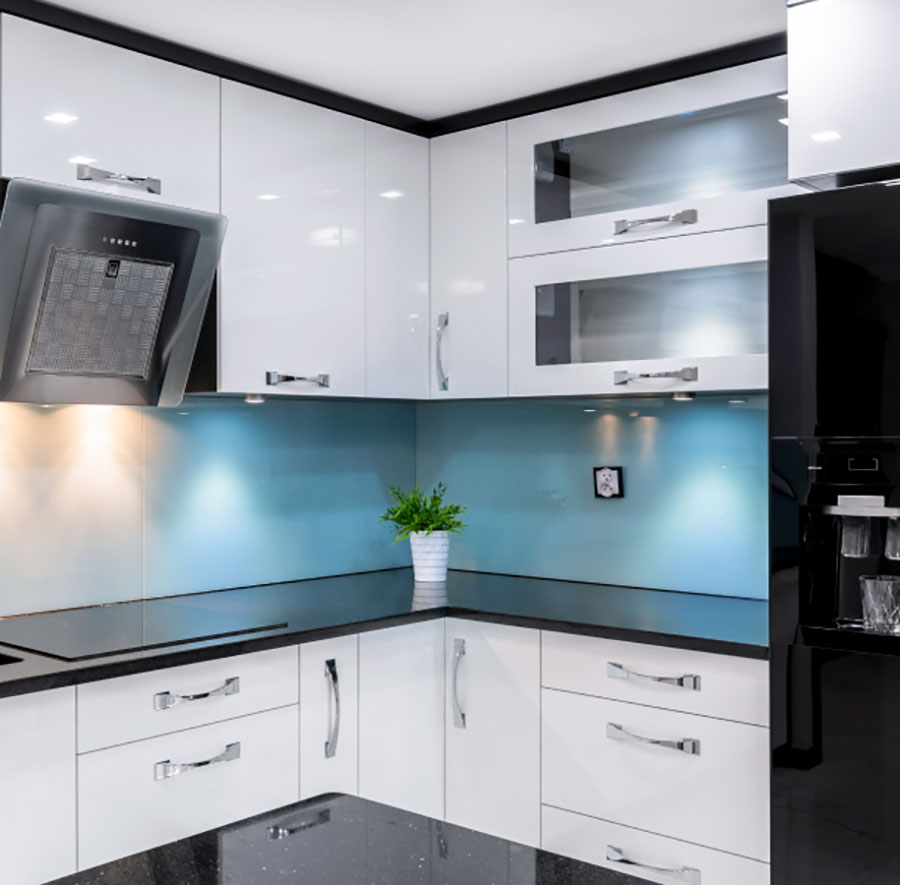 Our beautiful bespoke glass splashbacks are made to measure using the highest quality Pilkington™ or Saint Gobain glass. Design and drawing services are included to help you envision your project.